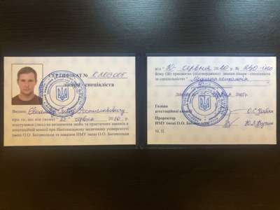 - НМУ ім. О.О. Богомольця, у 2019 році (спеціаліст)