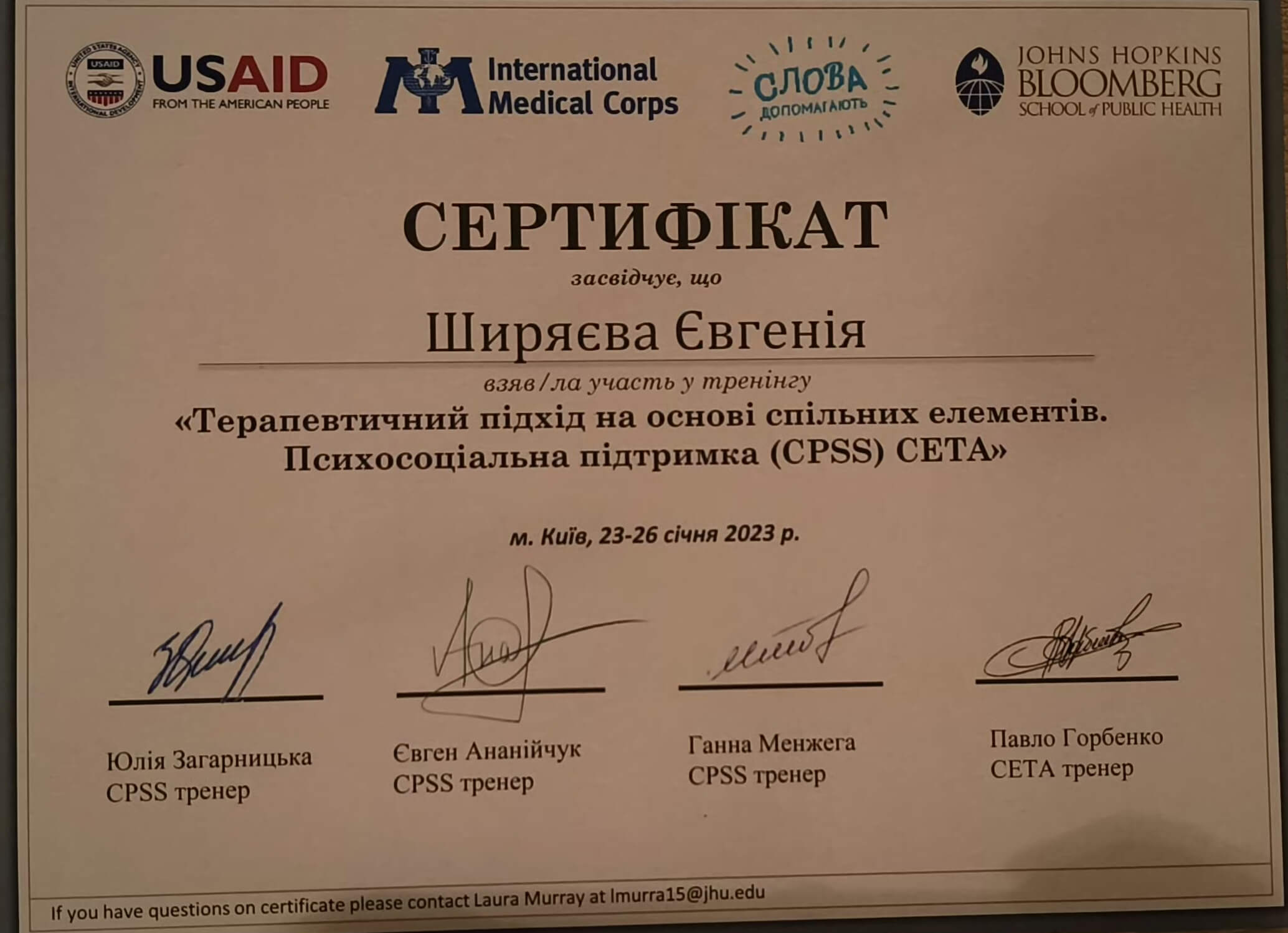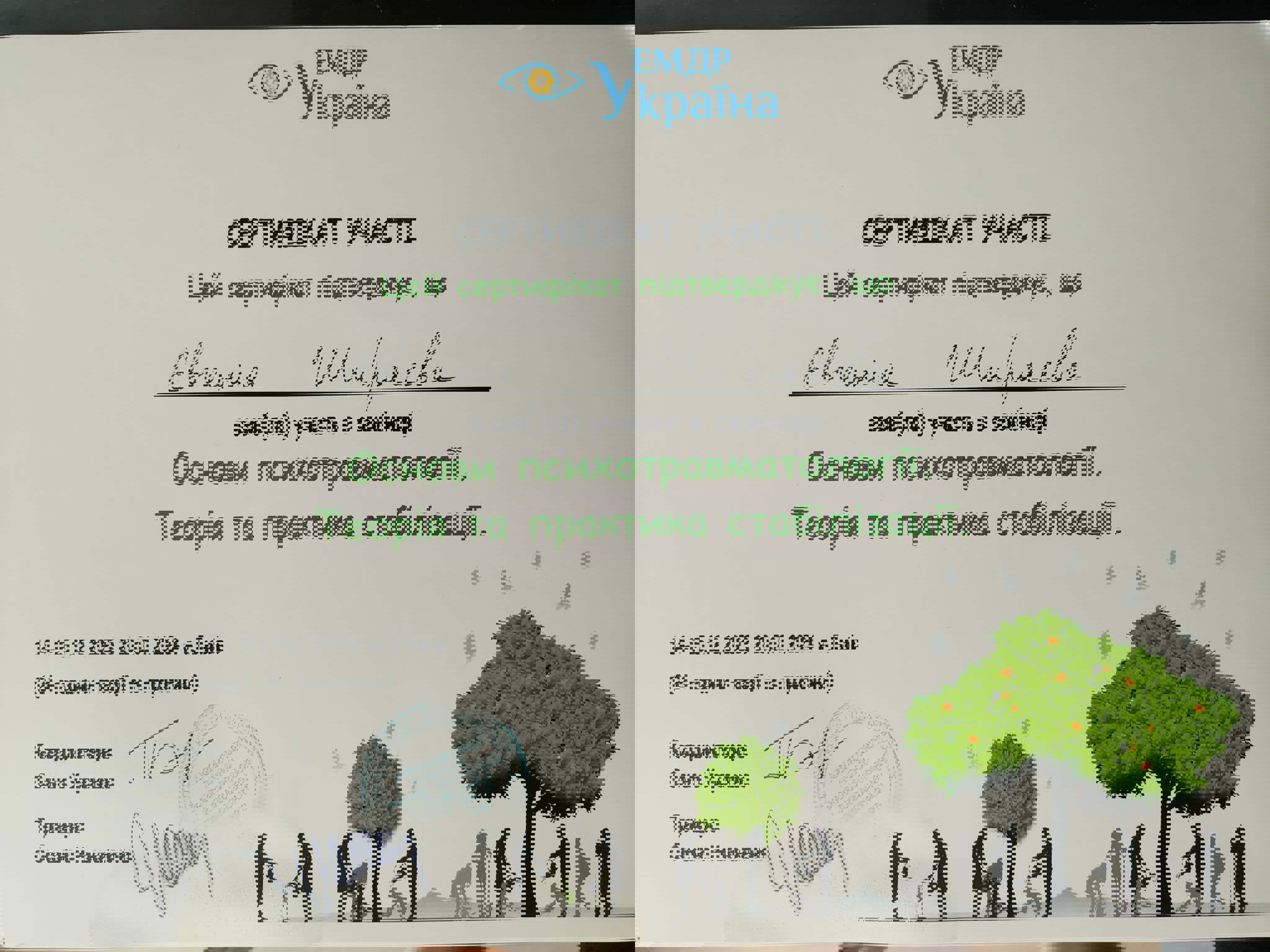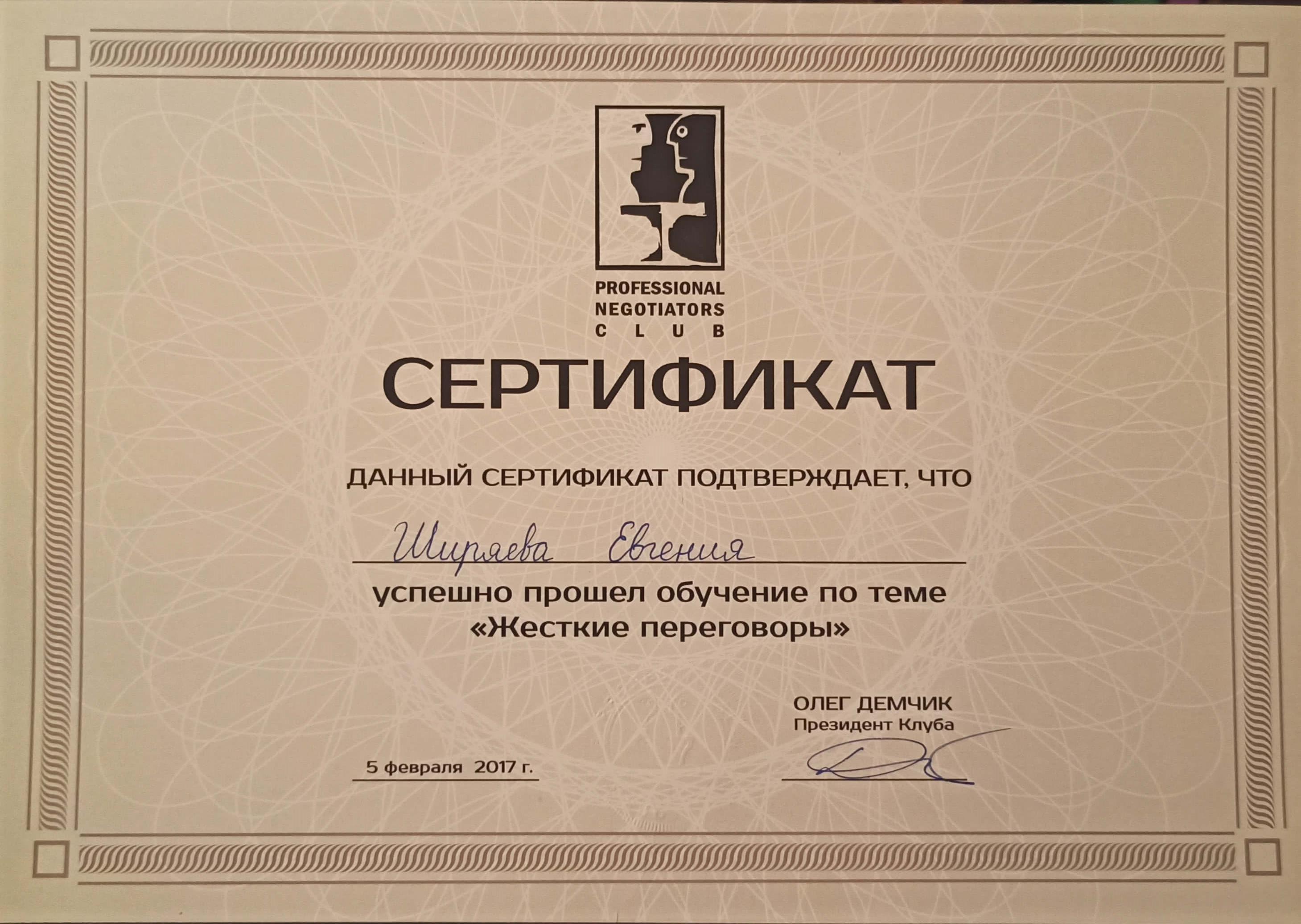 Сертифікати: