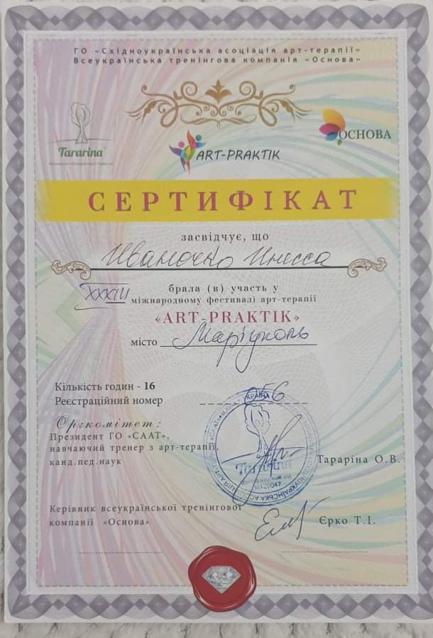 Практикую, отримую супервізію, проходжу і власну особисту терапію, що дуже важливо для стійкості кожного фахівця такої професії, що допомагає, як психолог.