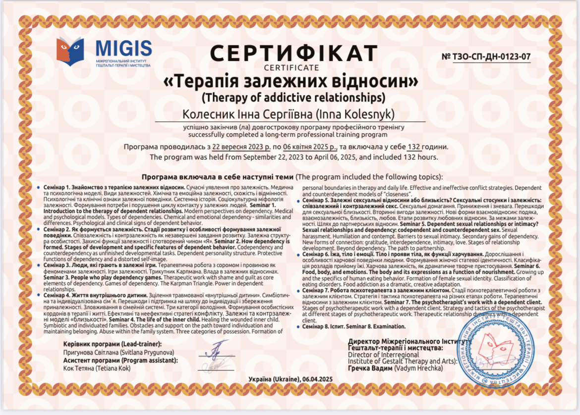 - Запити, з якими працює/не працює психолог та освіта. Щоб попередньо розуміти, чи є досвід саме у ваших темах.