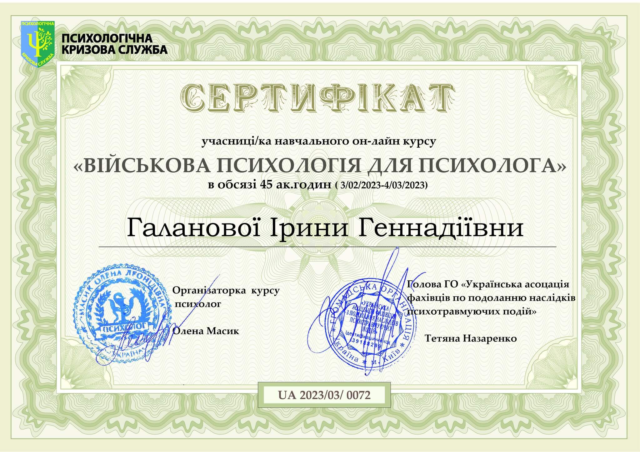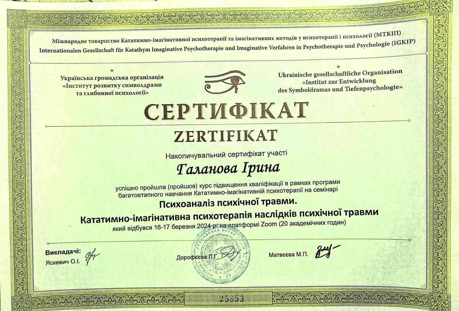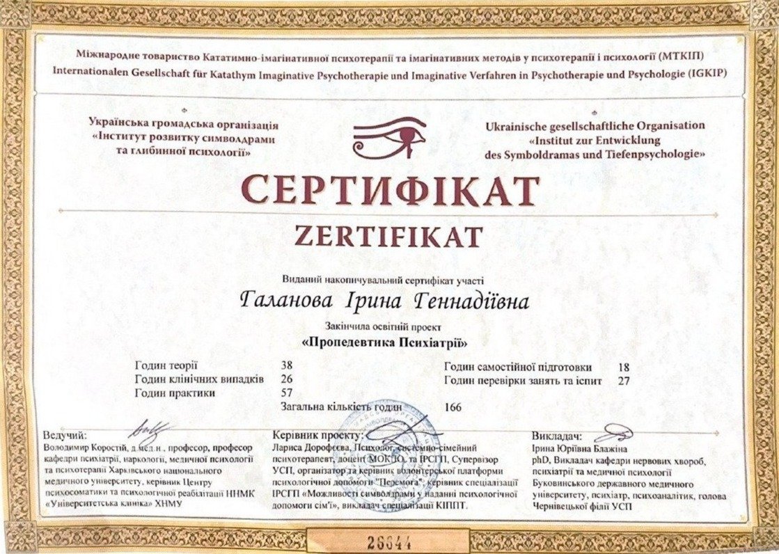 Я - психолог, сертификований коуч. Зараз закінчую навчання на психотерапевта у методі Кататимно-імагінативної психотерапії (Символдрама).
