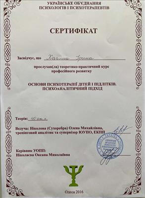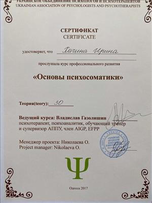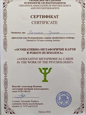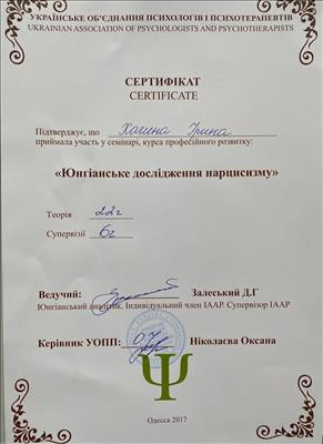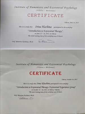 – Інститут психічного здоров'я м.Одеса. Екзистенційне психологічне консультування 2016р.