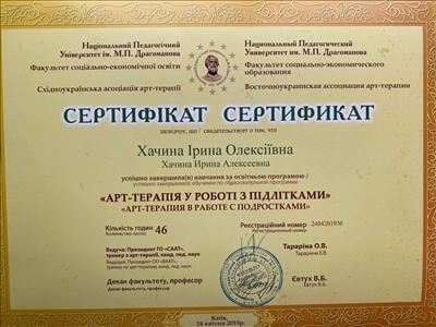 – НПУ ім.Драгоманова м.Київ. Арт-терапія у роботі з підлітками.2019р.