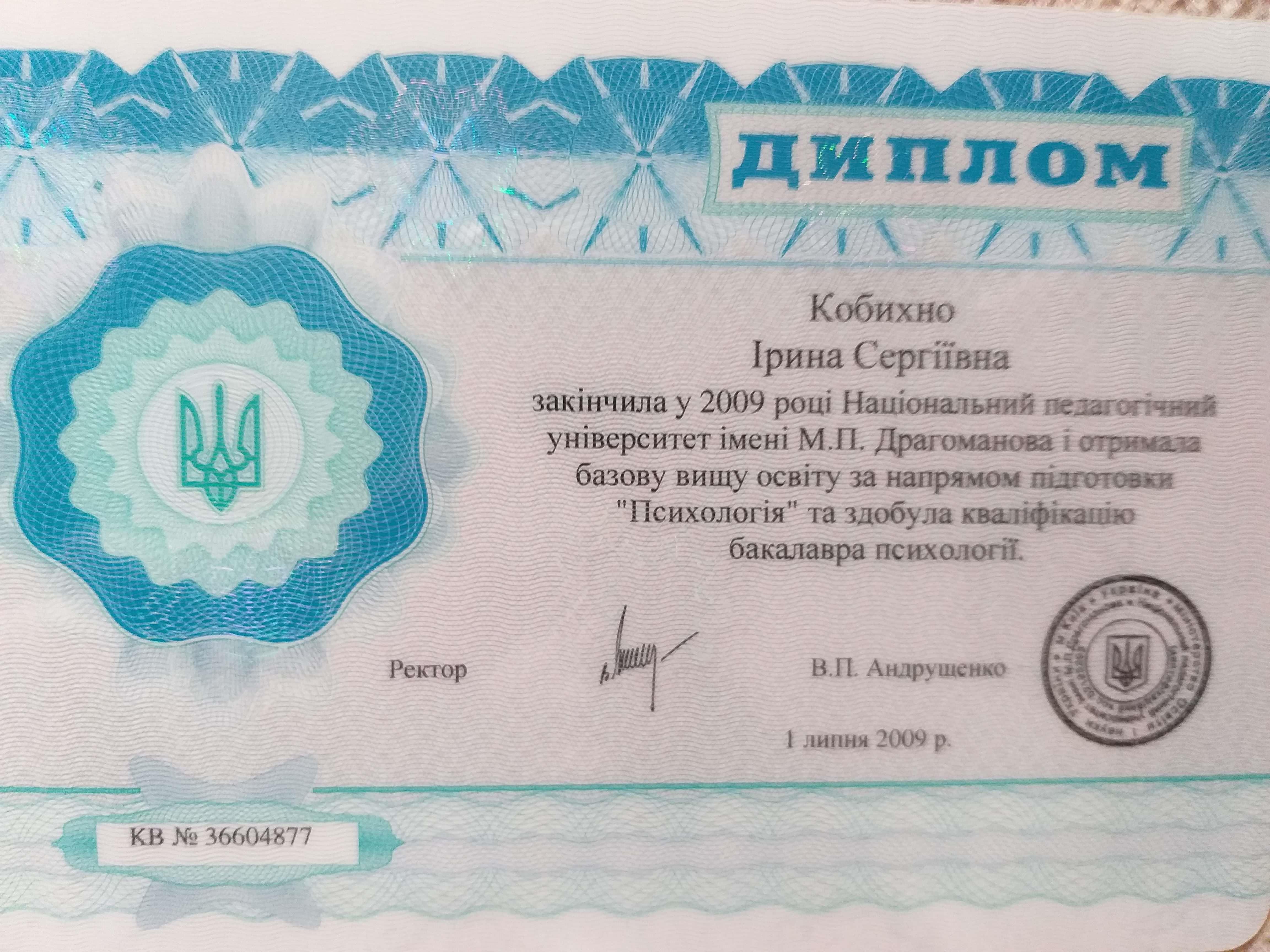 НПУ Драгоманова, магістр з психології. Тілесно-орієнтована психотерапія в Російській Асоціації тілесно-орієнтованих психотерапевтів. Підвищення кваліфікації з Бодинаміки. Проходжу навчання у методі тілесно-орієнтованої психотерапії "Хакомі".
