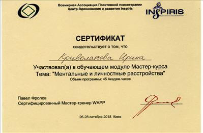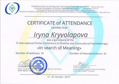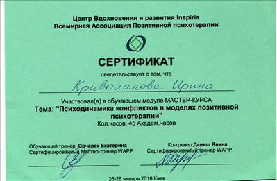 Вісбаденська академія позитивної психотерапії, консультант у методі позитивної психотерапії.