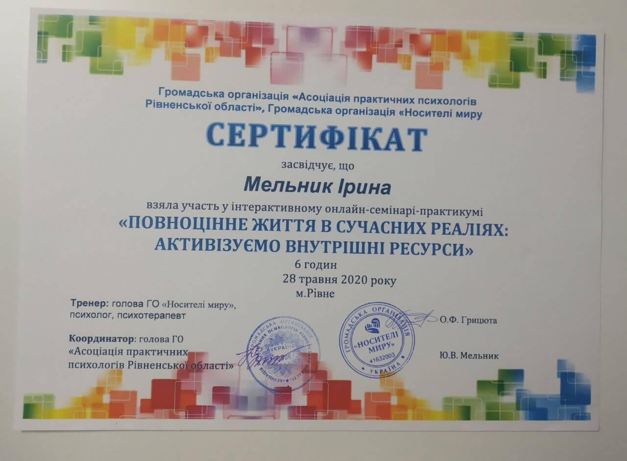 2020р - освітня кваліфікація "Магістр психології, викладач психології, психолог".