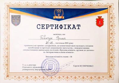 "Тренінг для фахівців, до компетенції яких належать питання запобігання та протидії домашнього насильства", 2021, ОДУВС