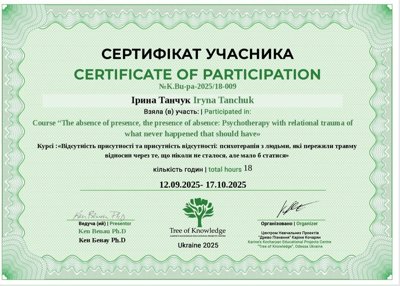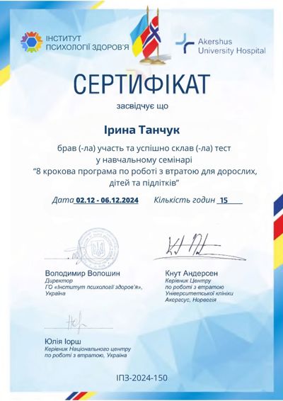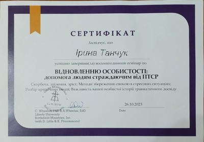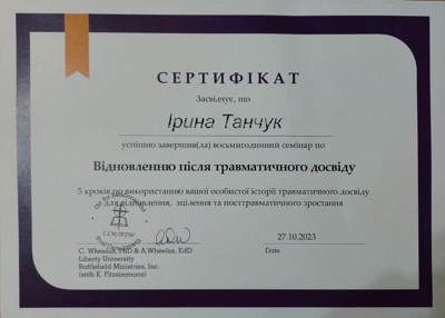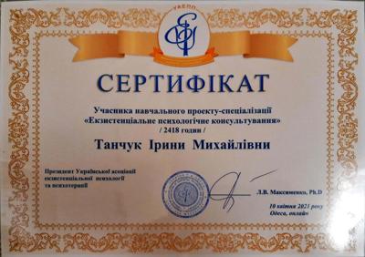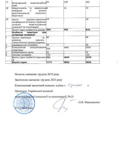 Спеціалізація - "Екзистенціальна психотерапія", 2021-2023, Л.В. Максименко