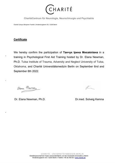 "Перша психологічна допомога", 2022, медичний університет Шаріте, Берлін