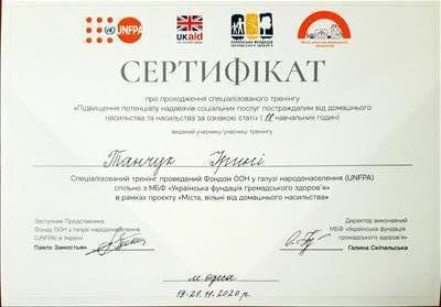 "Підвищення потенціалу надавачів соціальних послуг постраждалим від домашнього насильства та насильства за ознакою статі", 2020, UNFPA