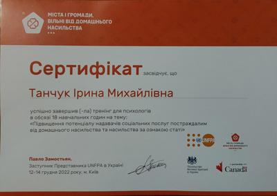 Тренінг для психологів "Підвищення потенціалу надавачів соціальних послуг постраждалим від домашнього насильства та насильства за ознакою статі", 2022, UNFPA