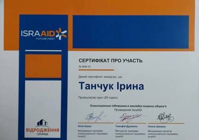 "Перша психологічна допомога, самодопомога та профілаклика вигоряння та втоми від співчуття" 2022, Ізраільська коаліція травми