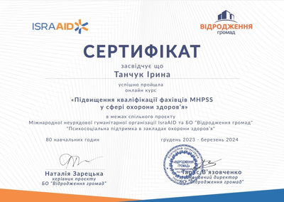 Підвищення кваліфікації фахівців MHPSS у сфері охорони здоров'я