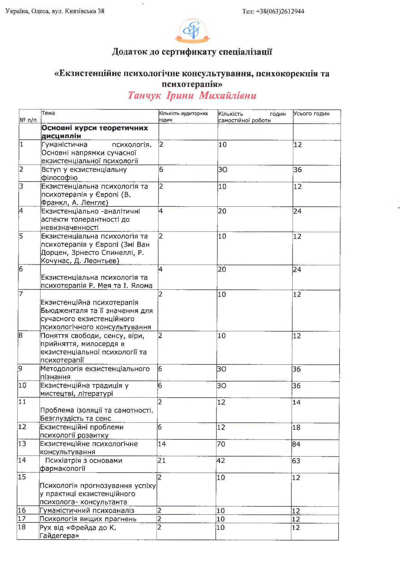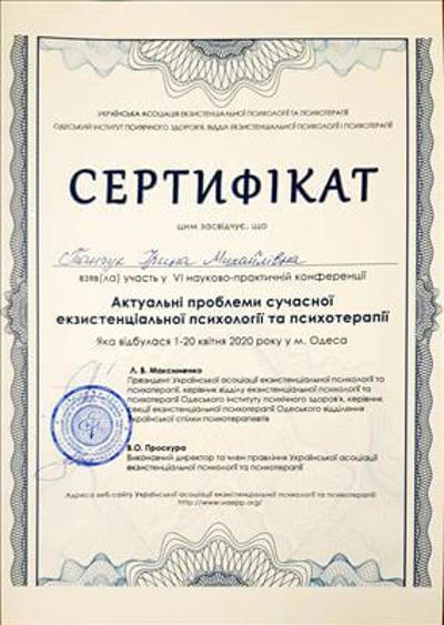 "Екзистенціальне психологічне консультування" спеціалізація, 2019-2021, Л.В. Максименко