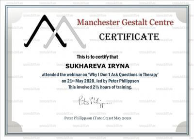 Працюю у гештальт-підході. Це спільна робота, яка допоможе Вам побачити, відчути та усвідомити себе в усьому розмаїтті, що дозволить надалі набути бажаної якості життя.