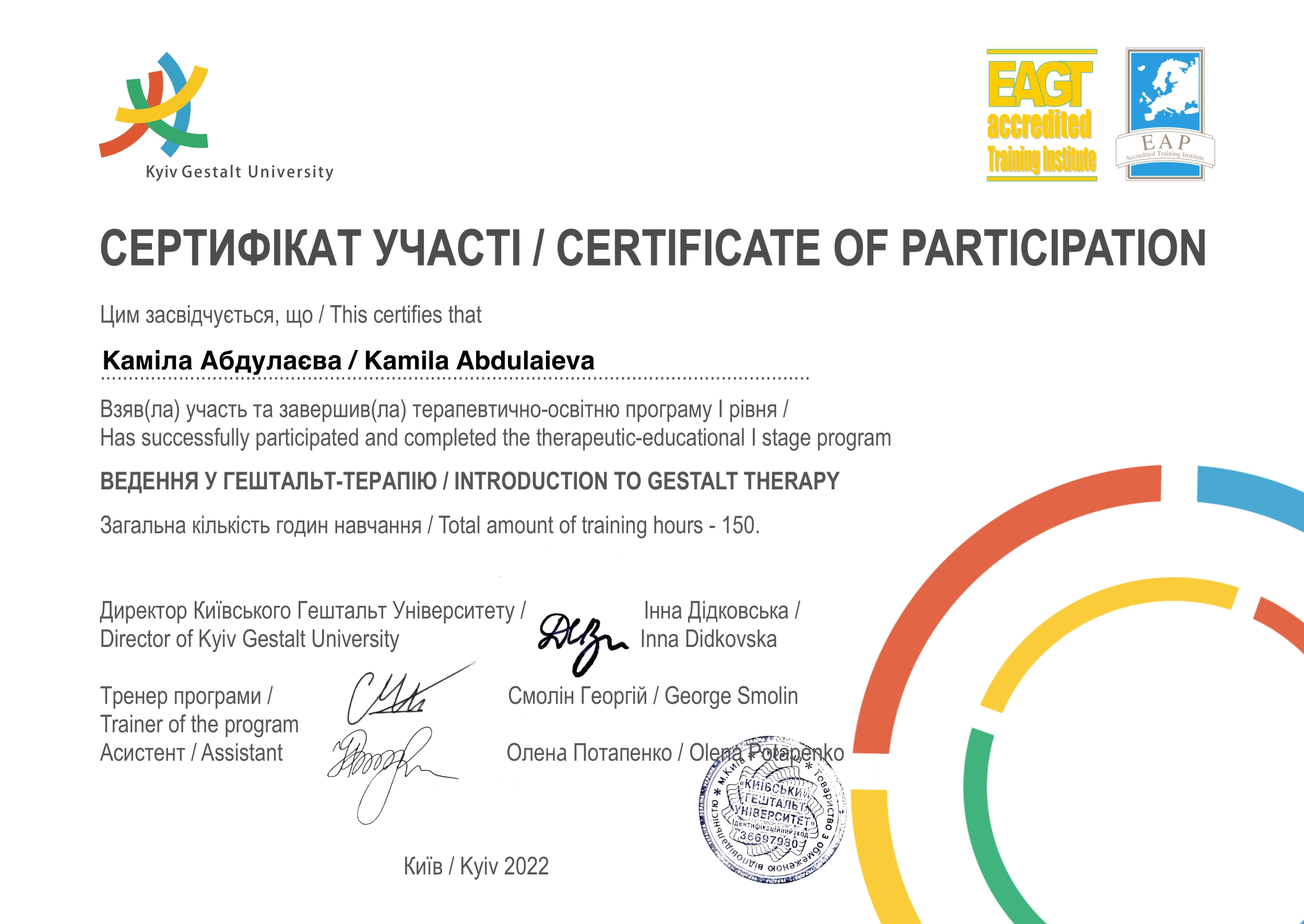 Київський гештальт університет, 2 ступінь, у процесі навчання 360+ годин
