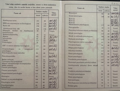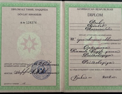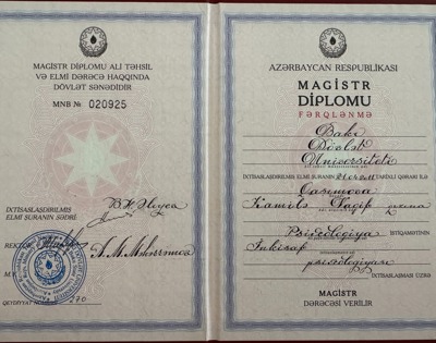 Бакинський державний університет. Спеціальність - Психологія