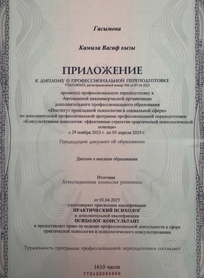 Інститут прикладної психології у соціальній сфері, м. Москва.