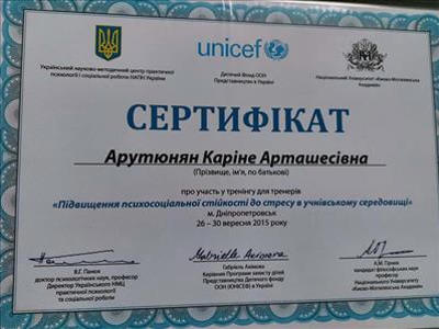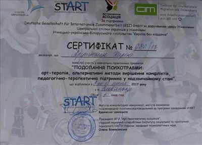 я закінчила ЗНУ, спеціальність Соціальний педагог, у ГУ "ЗІГМУ" здобула диплом магістра зі спеціальності Психолог.