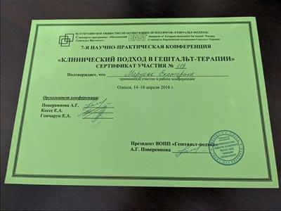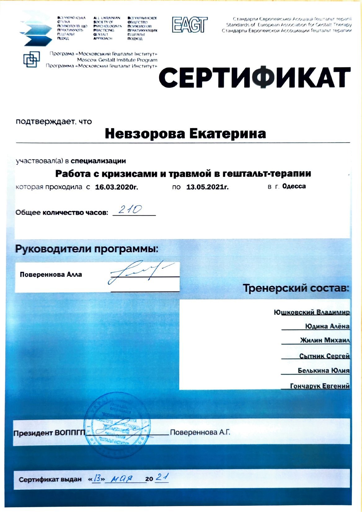 Спеціалізація "Робота з кризою і травмою у гештальт-терапії" (2020-2021);