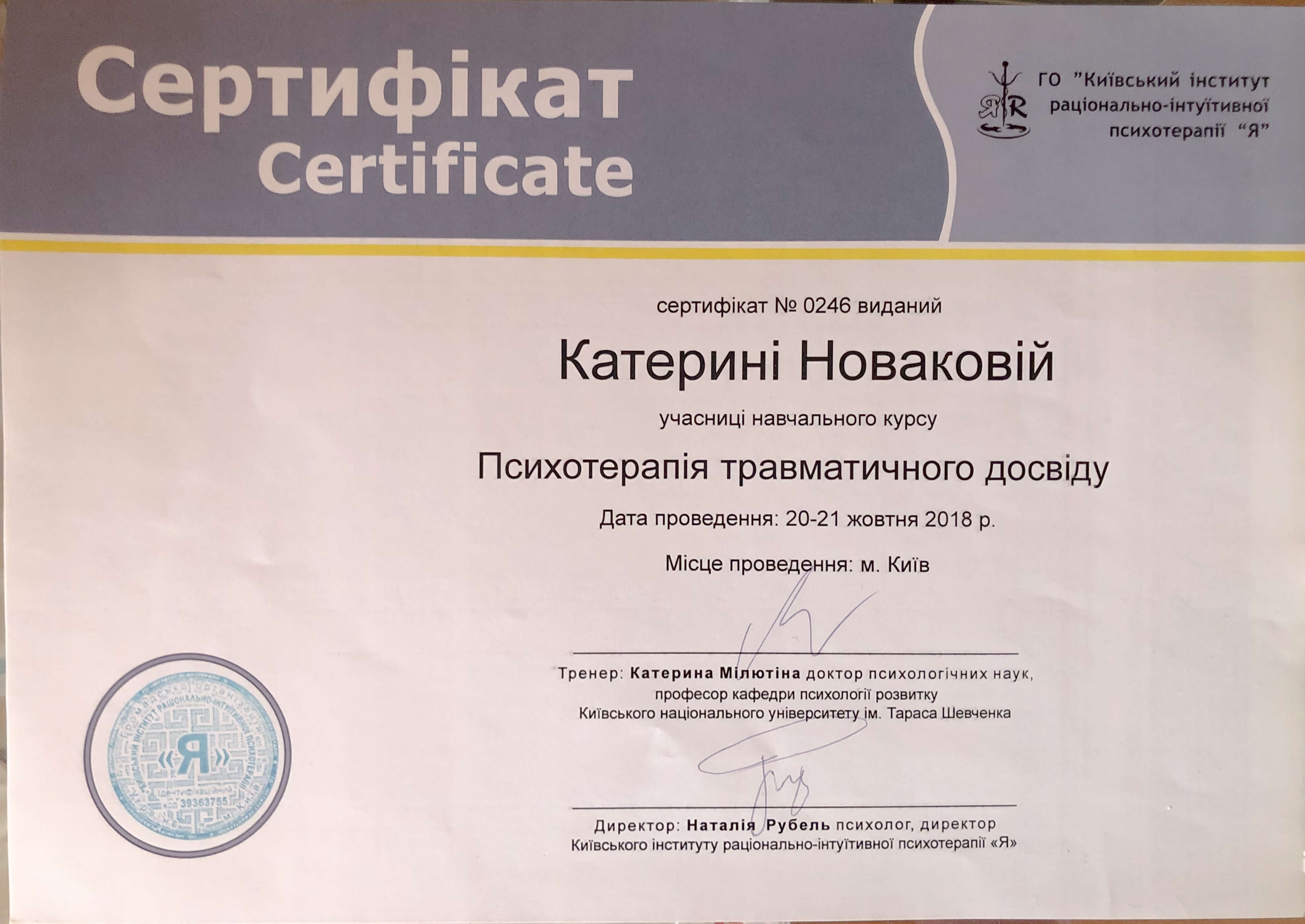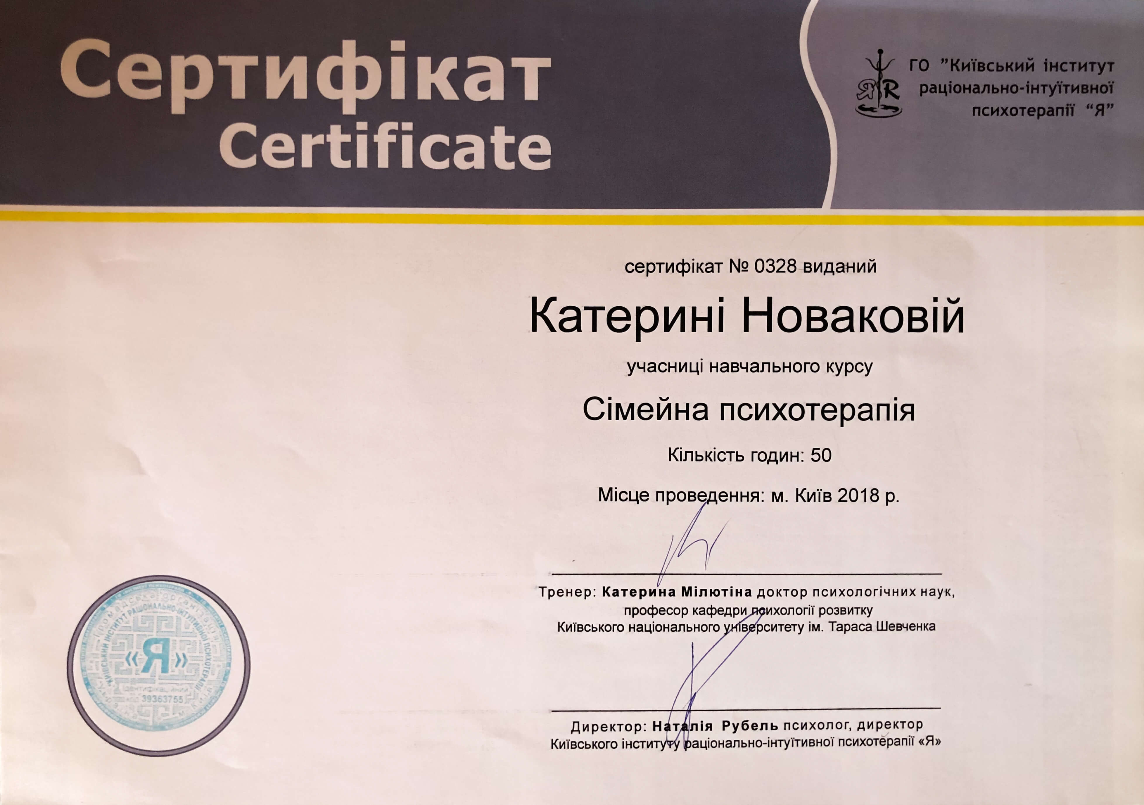 ГО "Київський інститут раціонально-інтуїтивної психотерапії "Я"