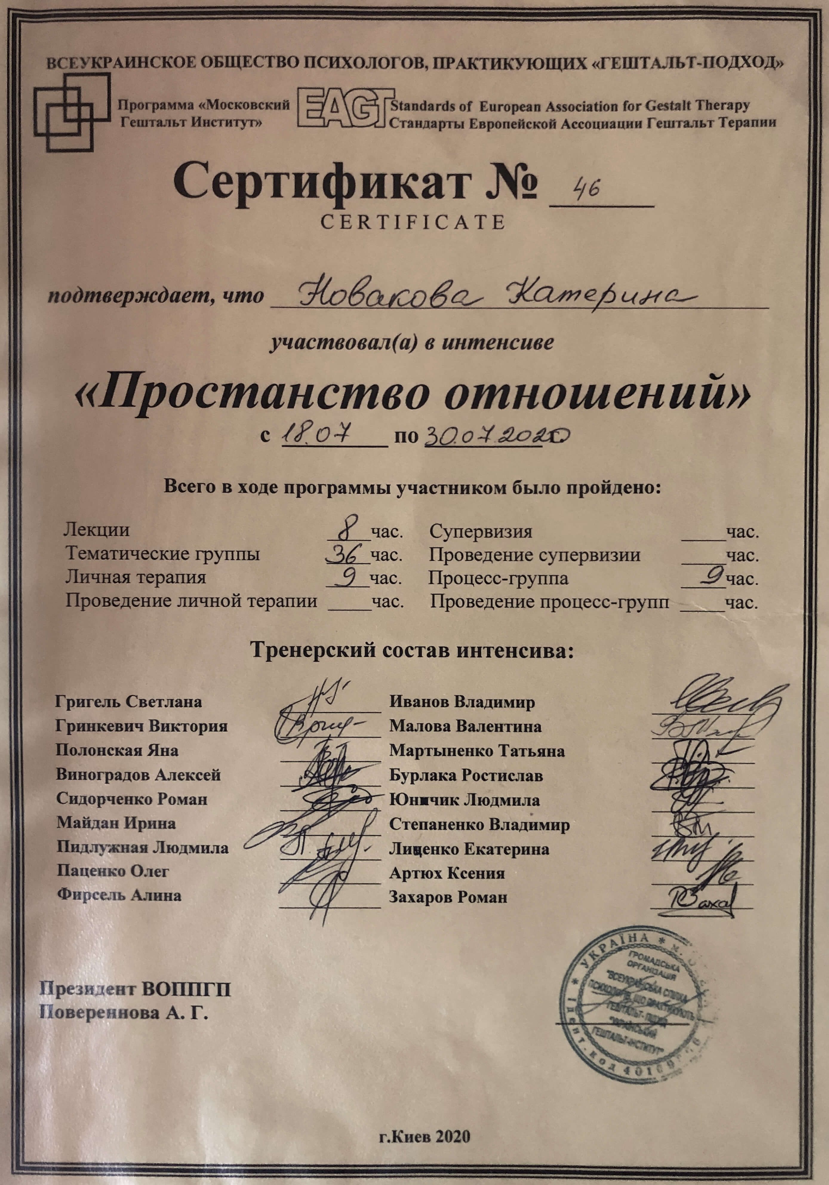 ☑️Закінчила другий ступінь "Теорія та практика Гештальт-терапії", сертифікована і акредитована
