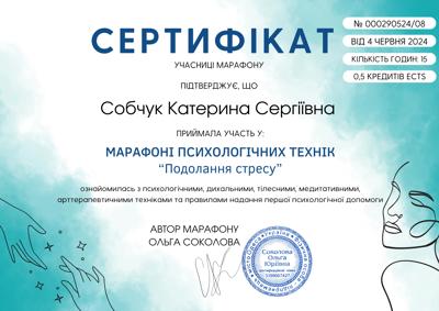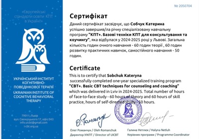 Вітаю! Я - Катерина, психологиня, консультую в методі когнітивно-поведінкової терапії (КПТ) низької інтенсивності та арттерапевтка.