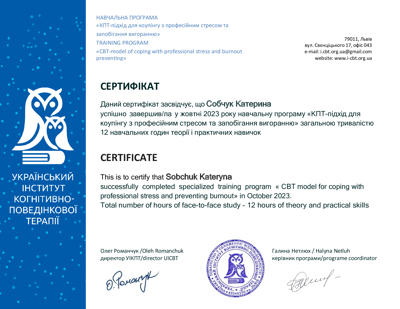 ✨«КПТ-підхід для коупінгу з професійним стресом та запобігання вигоранню»