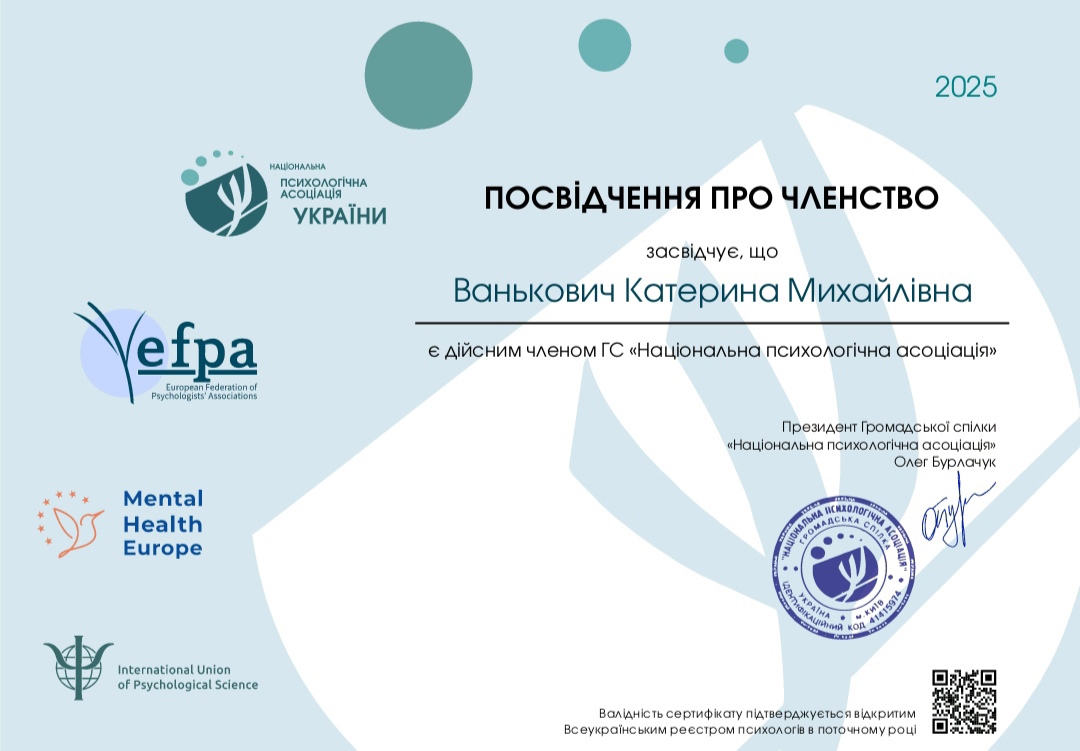 2014-2018 Львівський Університет ім. І.Франка, Психологія, спеціаліст;