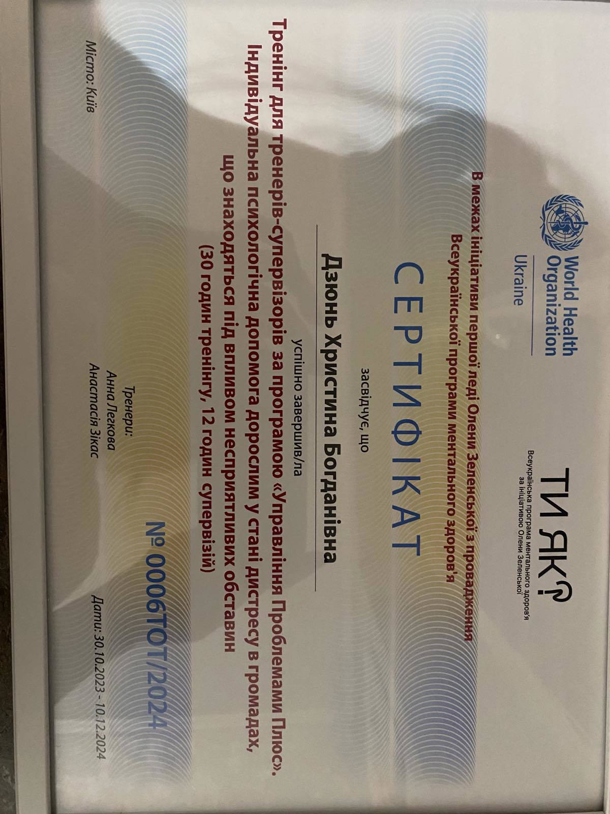 Мої колеги описують мене як спокійну, уважну, глибоку, таку, що вміє створювати атмосферу довіри, безпеки й поваги. У роботі для мене цінні щирість, делікатність і справжній контакт.