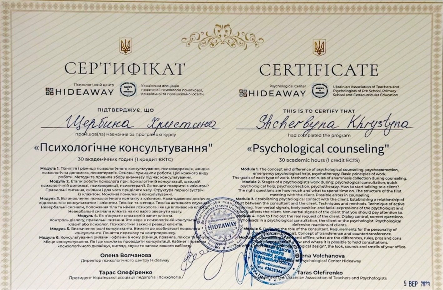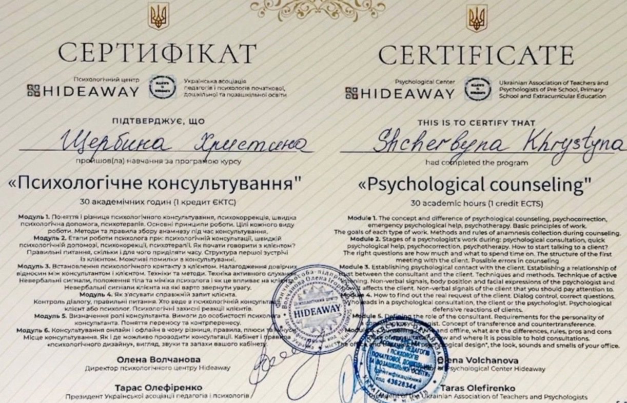 6. Навчальний психологічний центр HIDEAWAY –«Психологічне консультування»