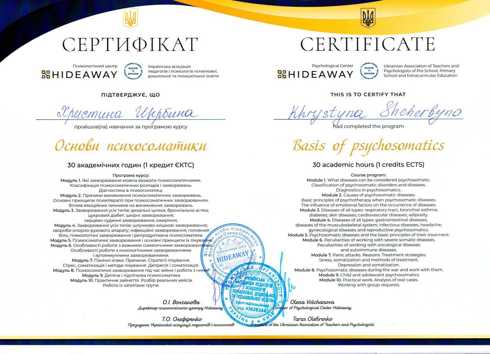 2. Навчальний психологічний центр HIDEAWAY –«Основи психосоматики»