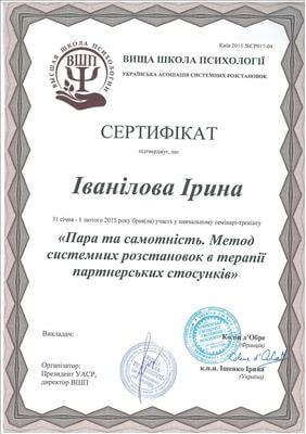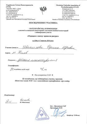 У психотерапію я прийшла з питаннями про стосунки у власній батьківській сім'ї, будучи у зрілому віці. Пропрацювавши дитячо-батьківські відносини, я створила благополучні відносини у своїй сім'ї, навчилася радіти життю у всіх її проявах. До мене прийшло розуміння системності у життєвих процесах.