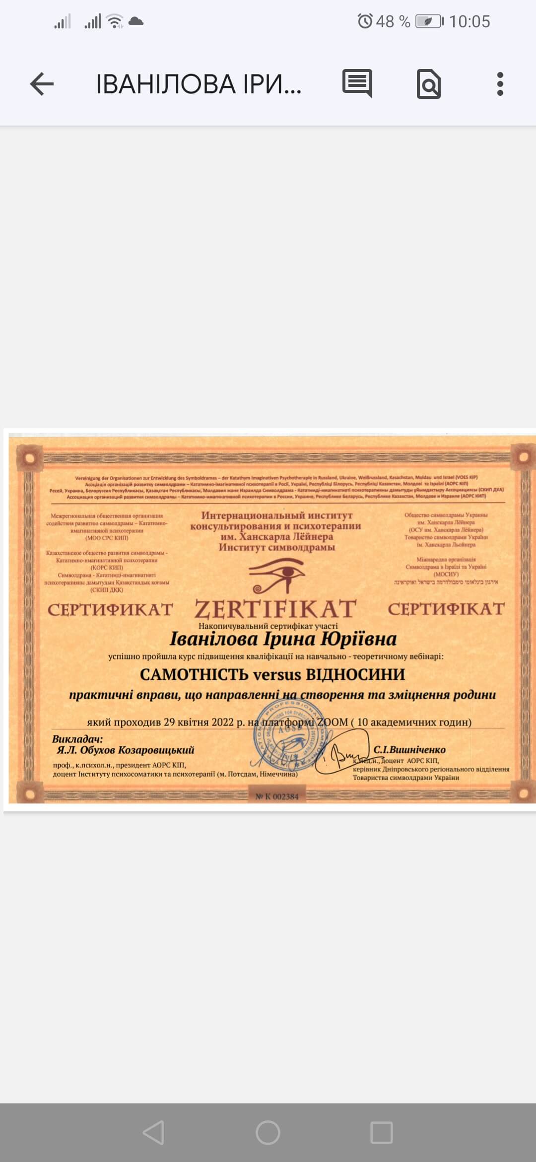 Сертифікати: