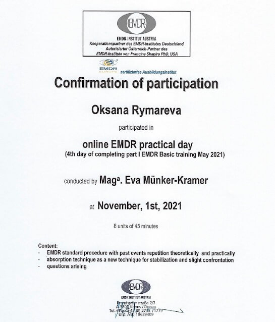 - EMDR Institut Austria (ДРДГ) - метод роботи з травмою та стресом (ПТСР)
