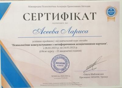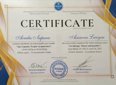 Також, менш короткі програми з розладів хврчової прведінки, арт- терапії, консультування з МАК, ЕМДР, казкотерарії, вступ в групову схема терапію та інші. 2019- 2023рр