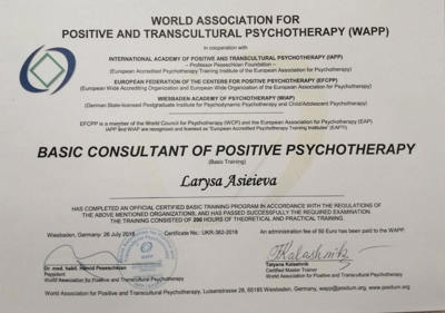 - позитивна психотерапія. Вісбаденська академія позитивної психотерапії (WAPP) 2018 р.