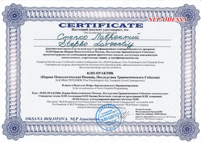 3. Кваліфікація НЛП-Практик Одеської асоціації НЛП.