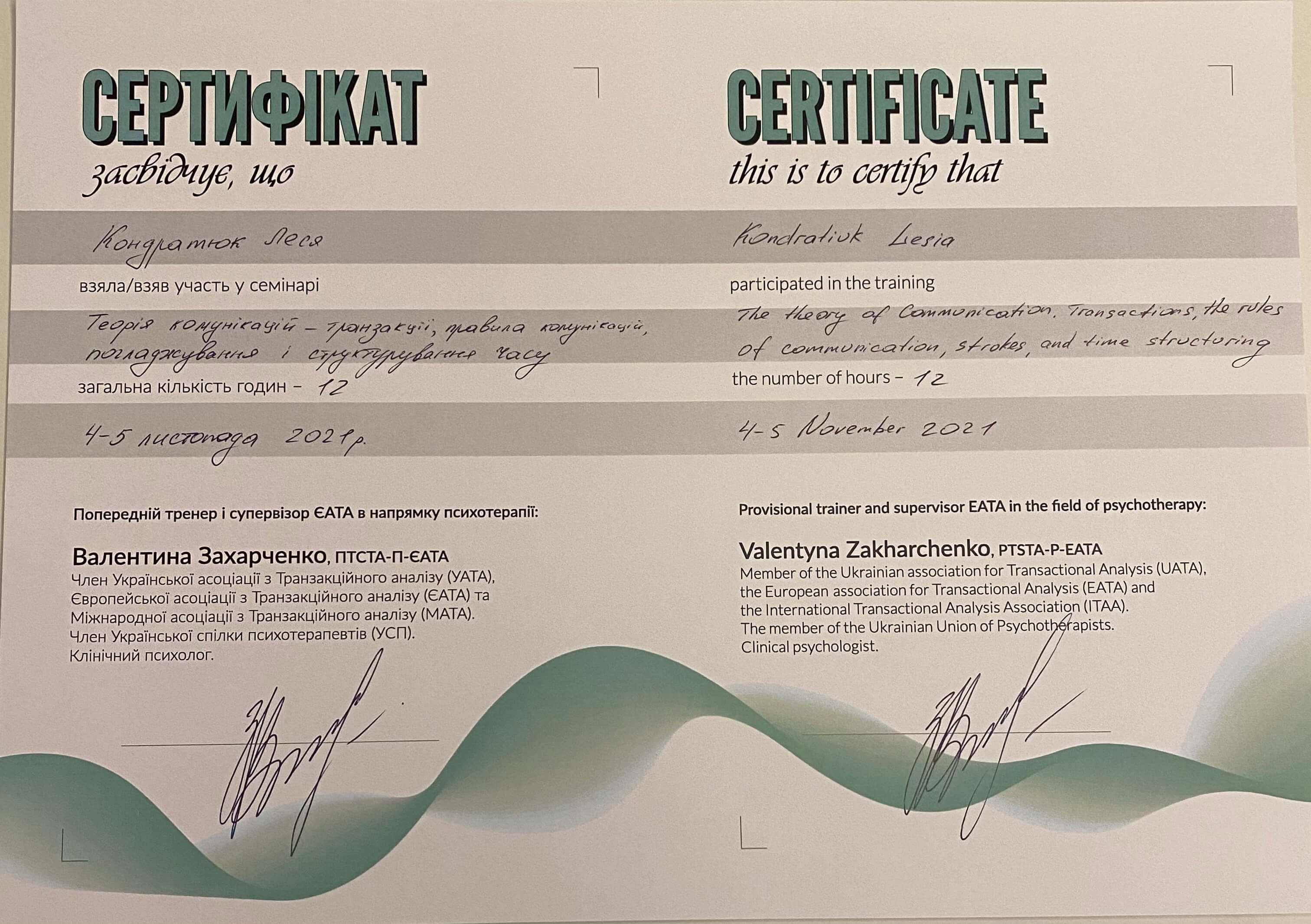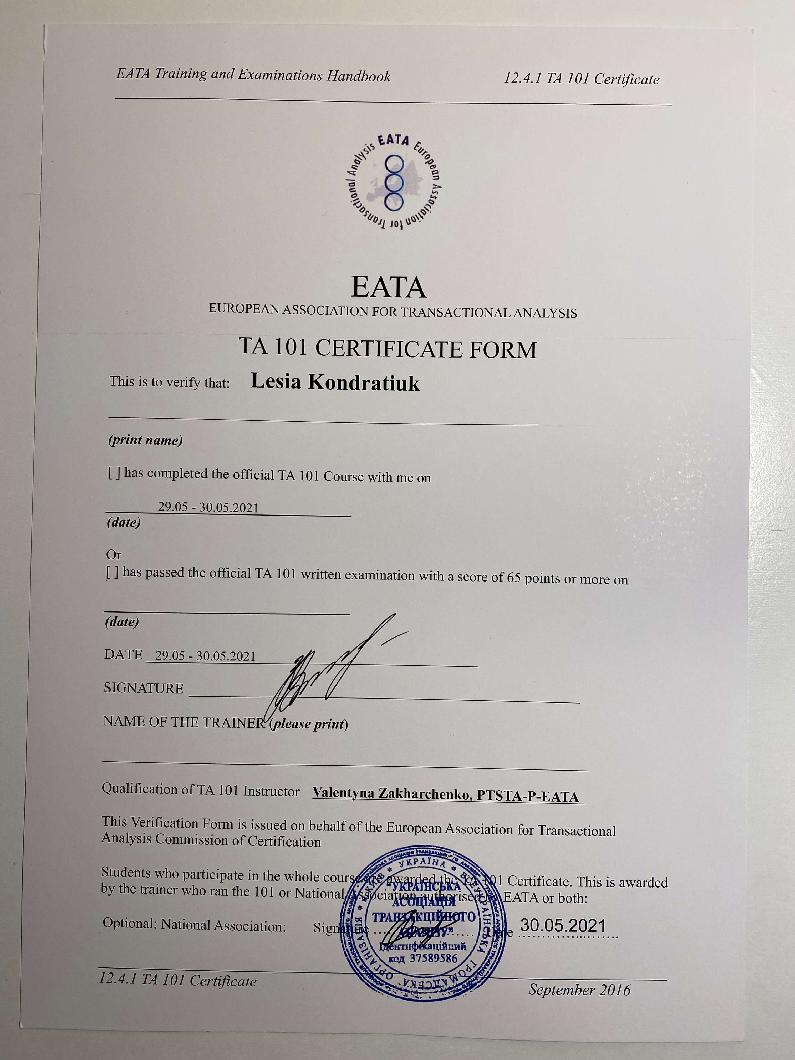 Українська асоціація з Транзакційного аналізу (УАТА) / Європейська асоціація з Транзакційного аналізу (ЄАТА) / Міжнародна асоціація з Транзакційного аналізу (МАТА)