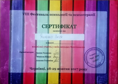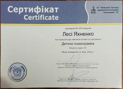 Київський інститут раціонально-інтуїтивної психотерапії "Я" (2020), курс лекцій "Дитяча травма".