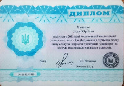 ЧНУ ім. Ю. Федьковича (2009 – 2013), спеціальність "філософія".