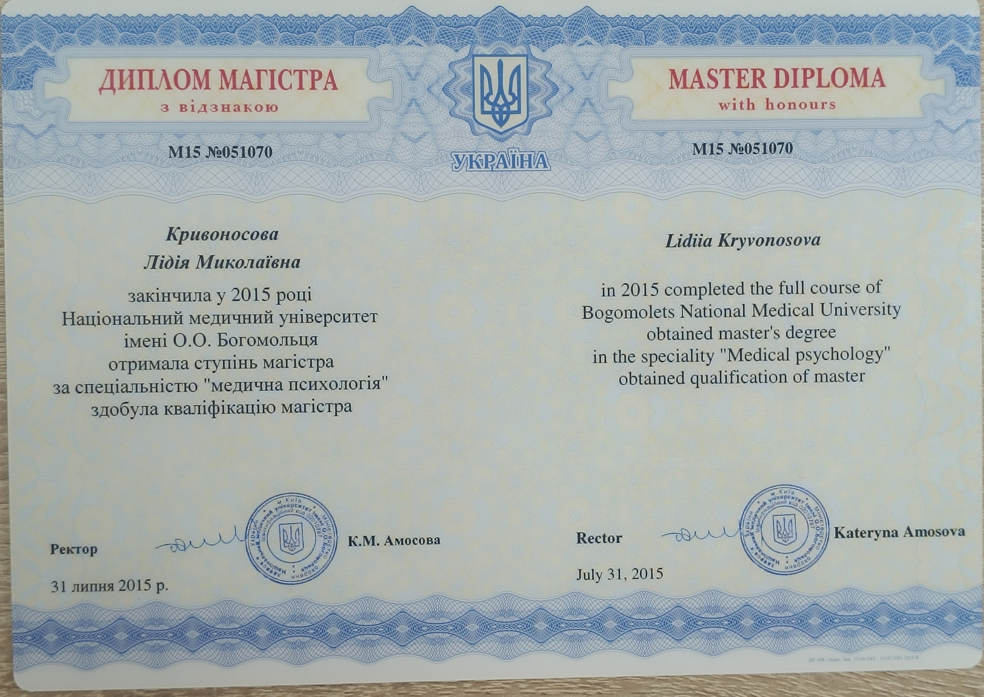 Я лікар-психолог, закінчила медичний університет, під час навчання дуже подобалося організовувати та приймати участь у конференціях та вивчати психологію, а з п'ятого курсу почала навчання першим крокам до психотерапії. Як відмінниця, не на слуху знаю, що таке бути "хорошою дівчинкою" на шкоду собі, переживати страх щодо осуду іншими та як змінювати це та проявлятися собою.
