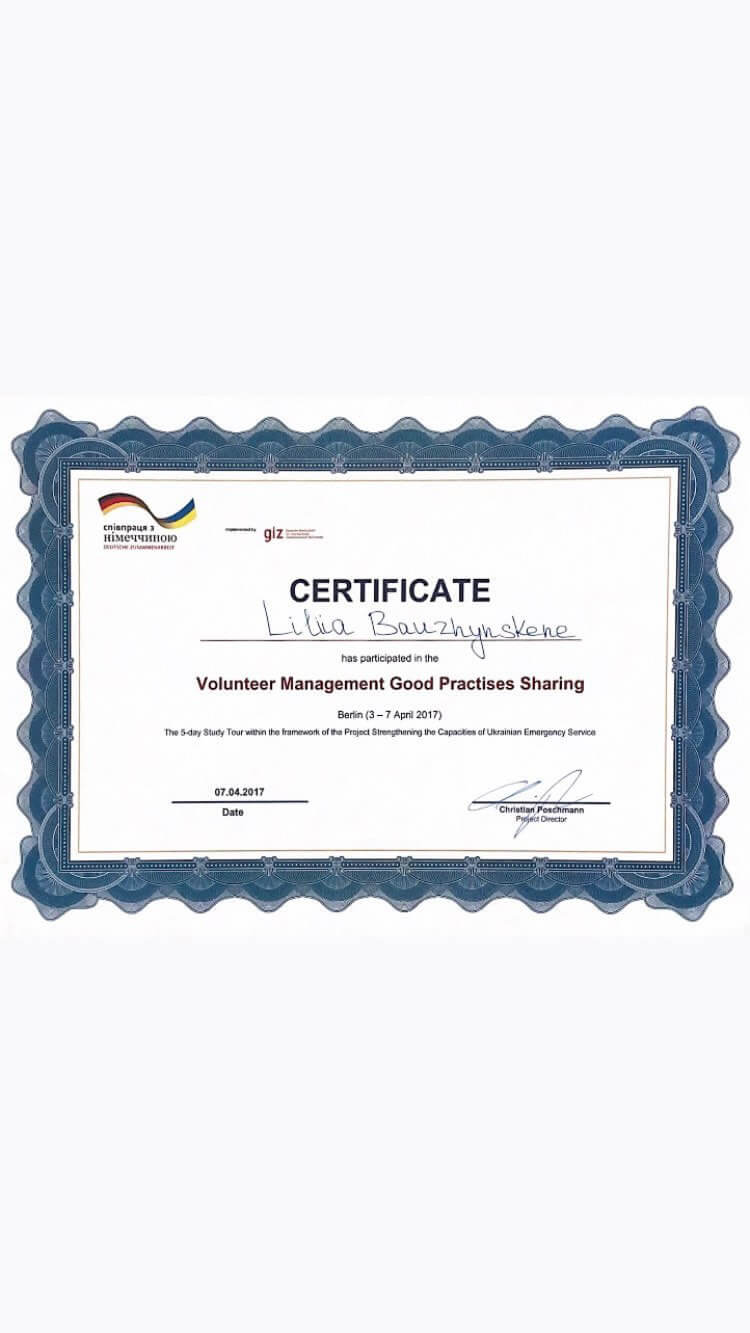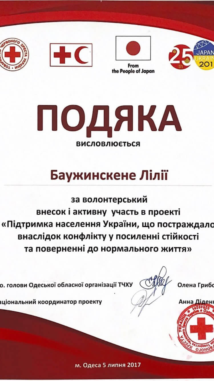 З 2016 проходила навчання та працювала з ВПО по міжнародним програмам Червого Хреста.