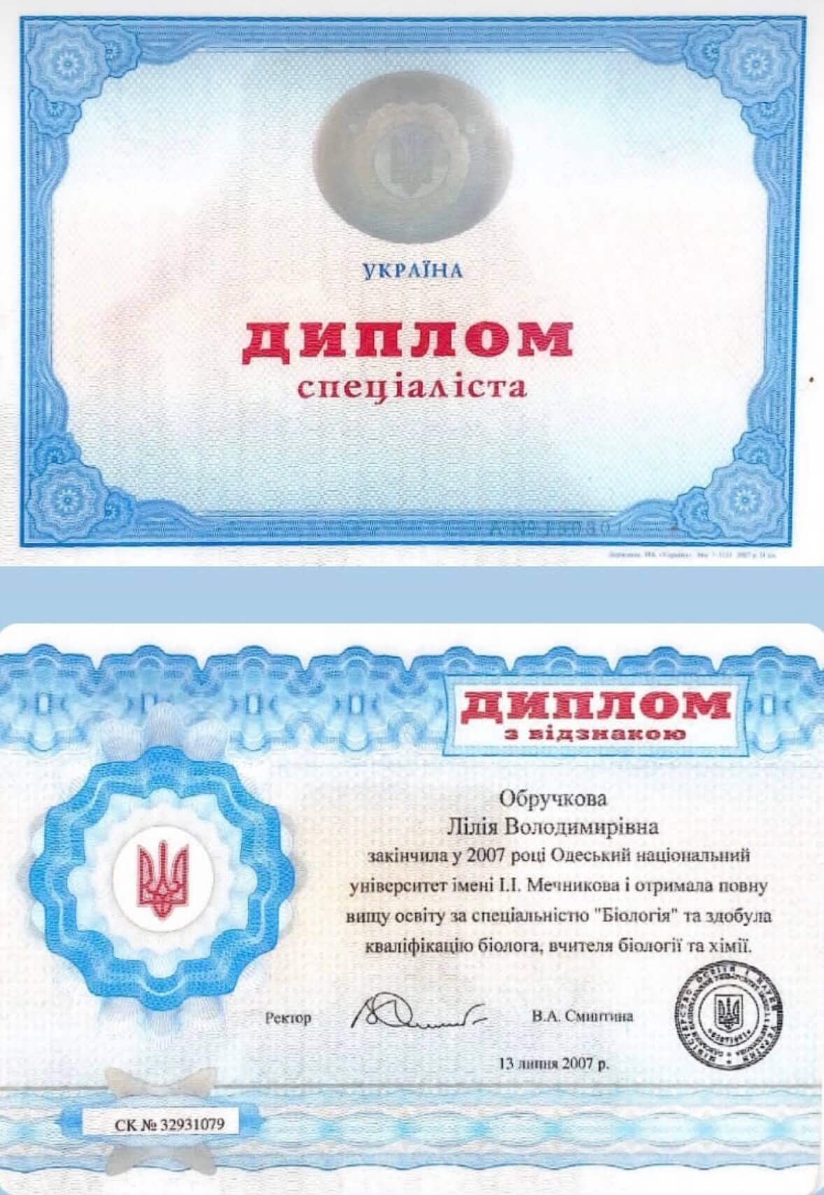 ОНУ їм.І.І.Мечникова. Магістр. Викладач біології та хімії.