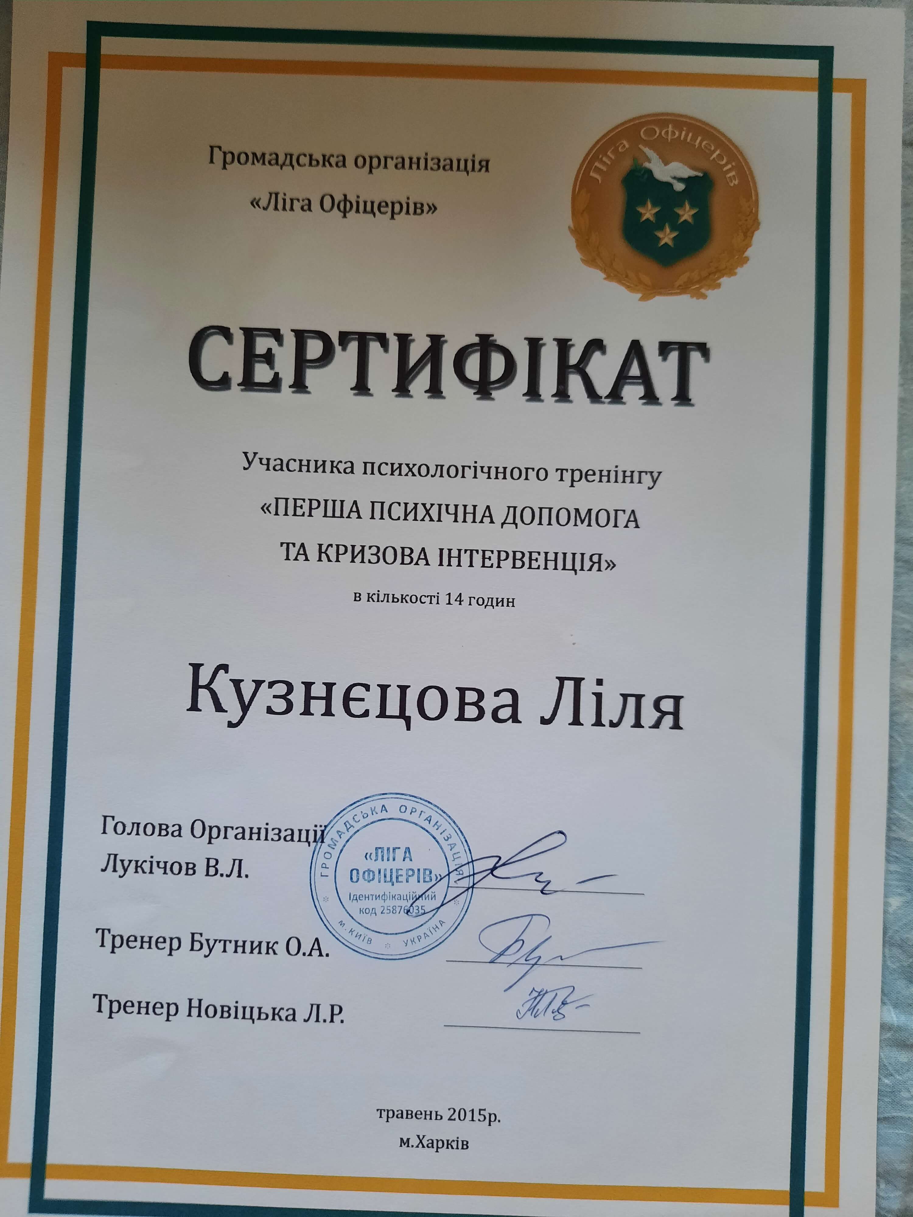Сертифікати: