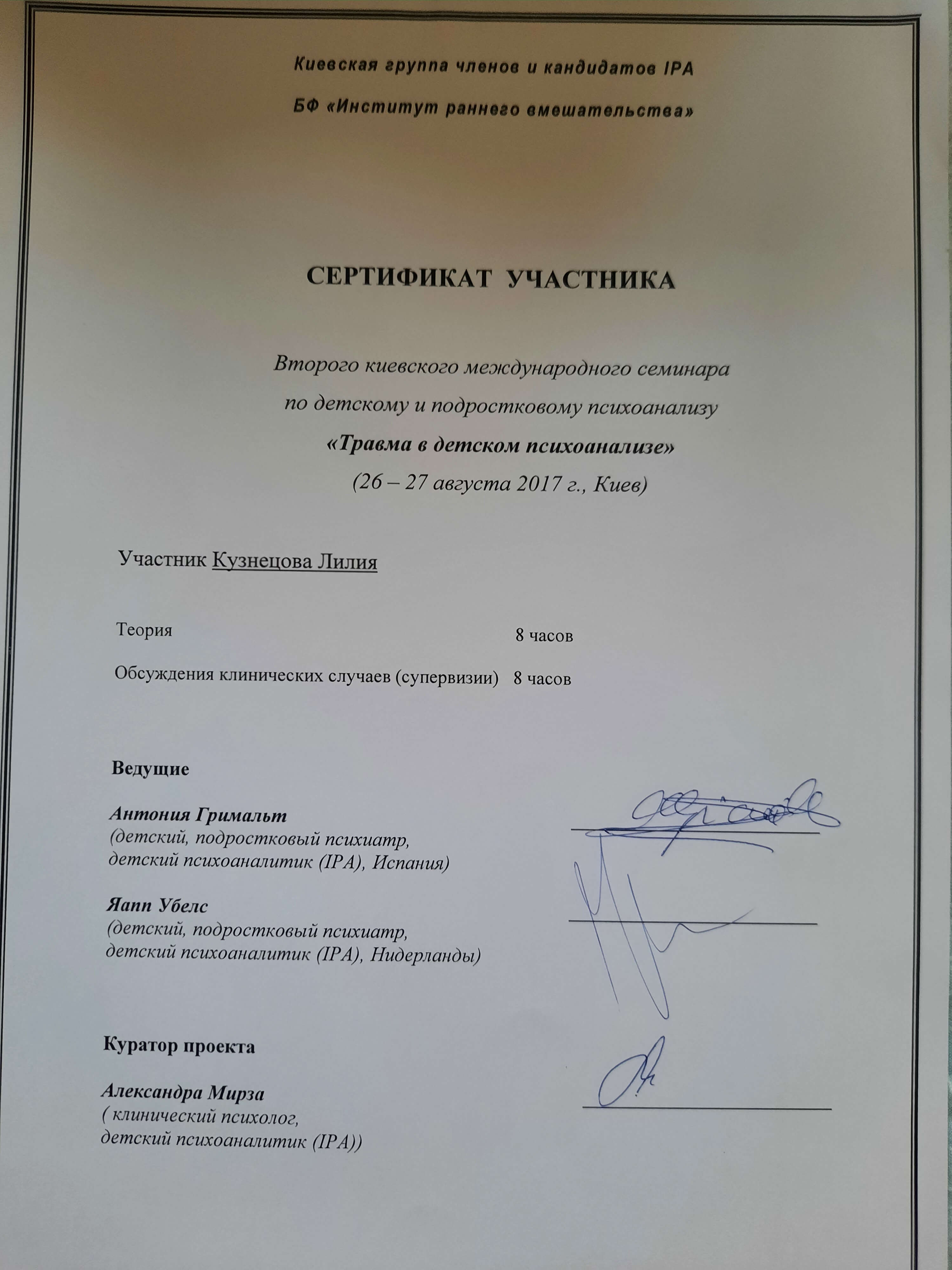 Второго киевского международного семинара по детскому и подростковому психоанализу «Травма в детском психоанализе»