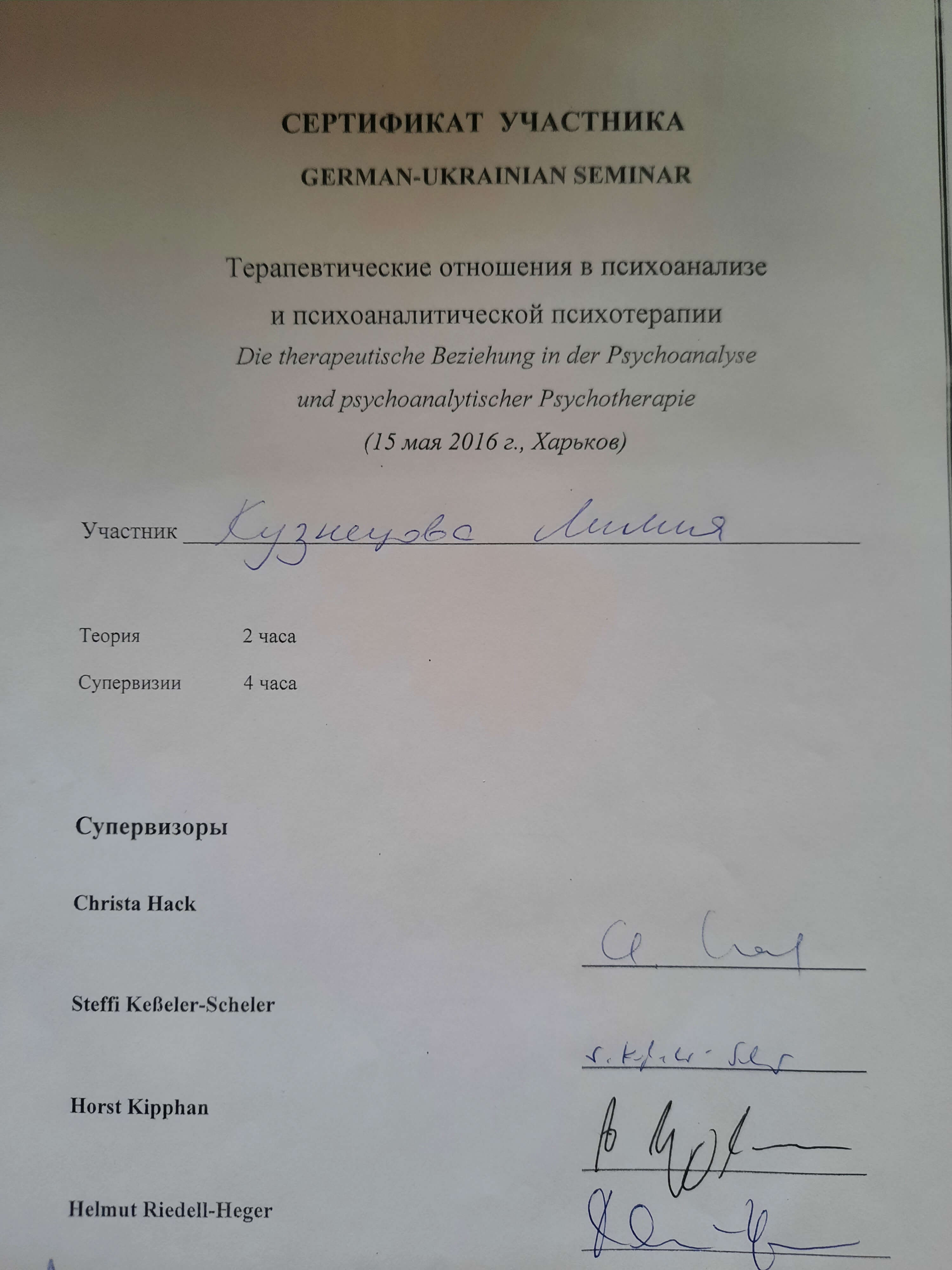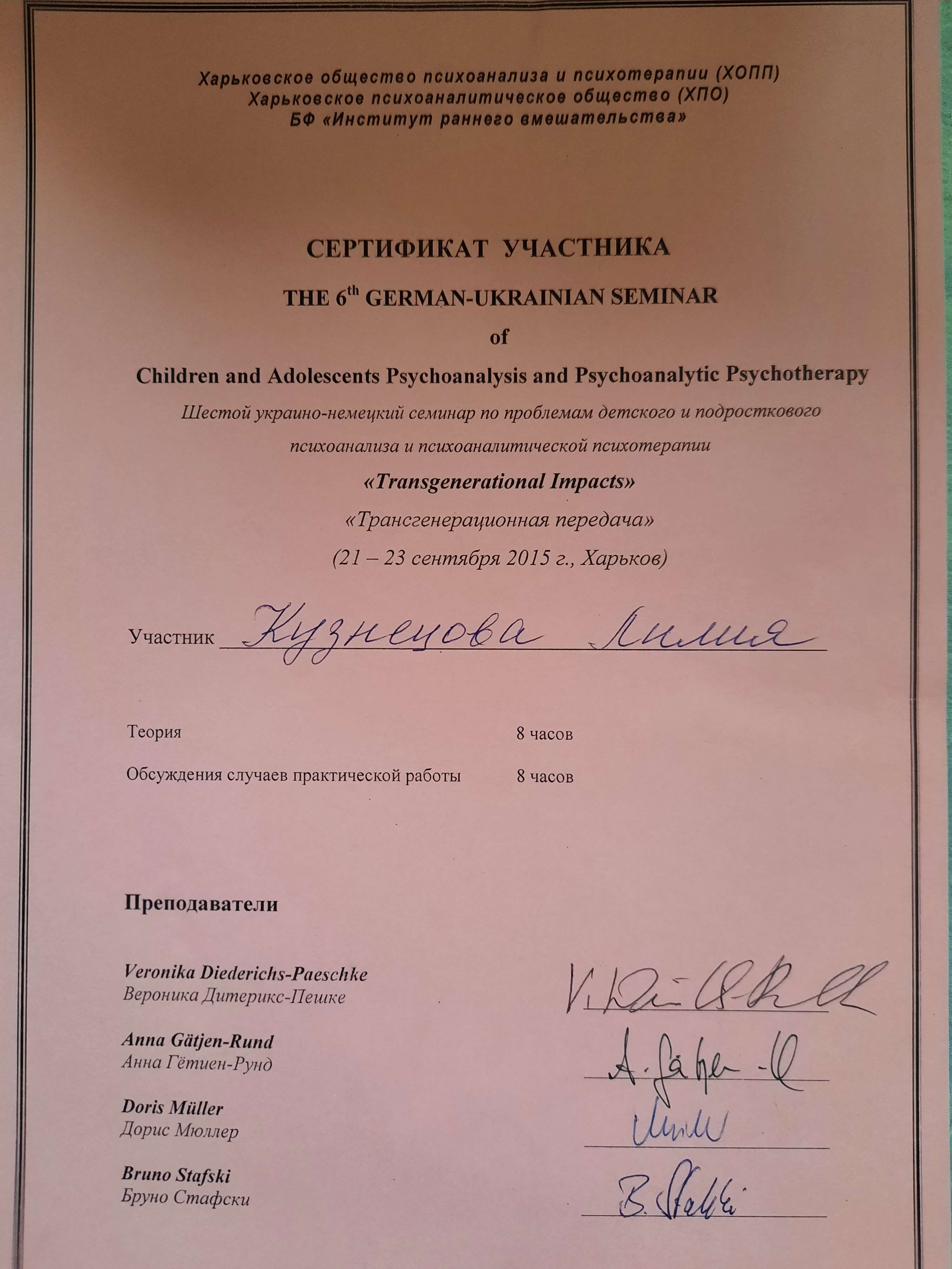 THE 6th GERMAN-UKRAINIAN SEMINAR of Children and Adolescents Psychoanalysis and Psychoanalytic Psychotherapy