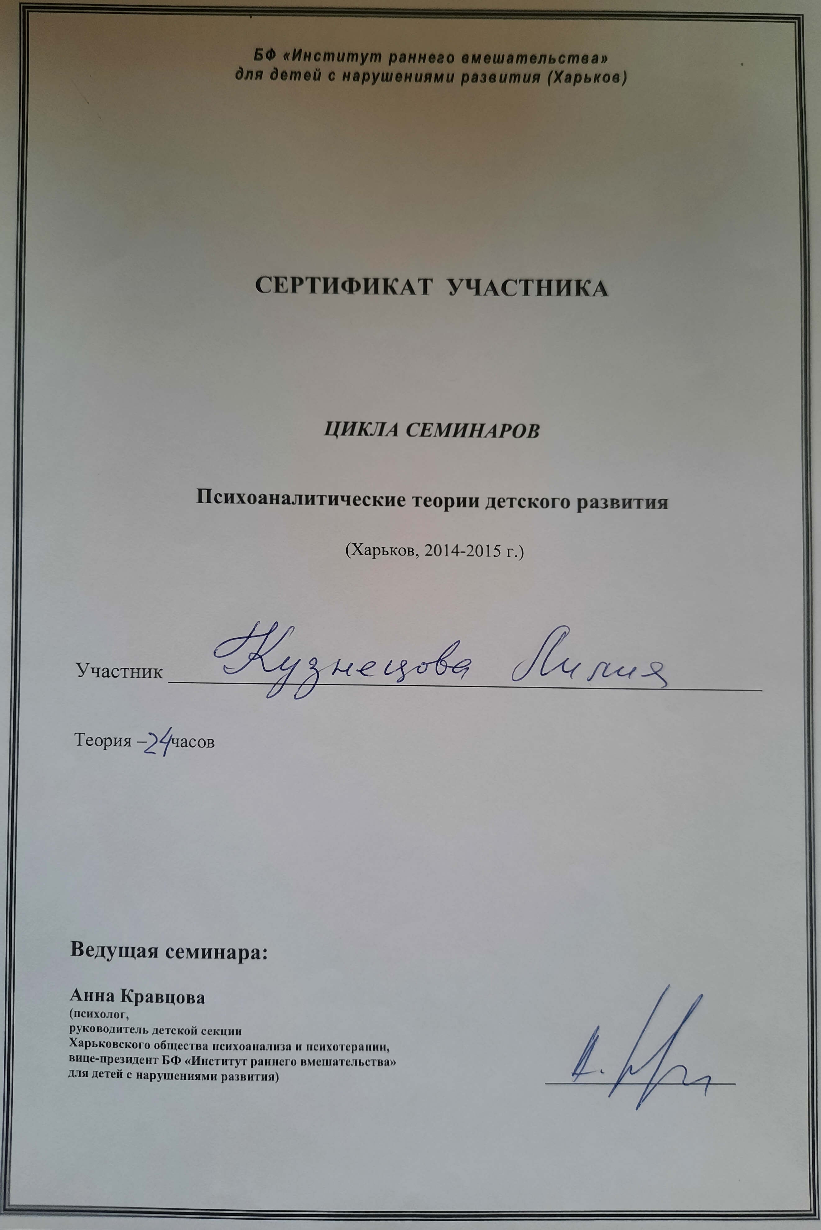 21 – 23 сентября 2015, Кількість годин - 16