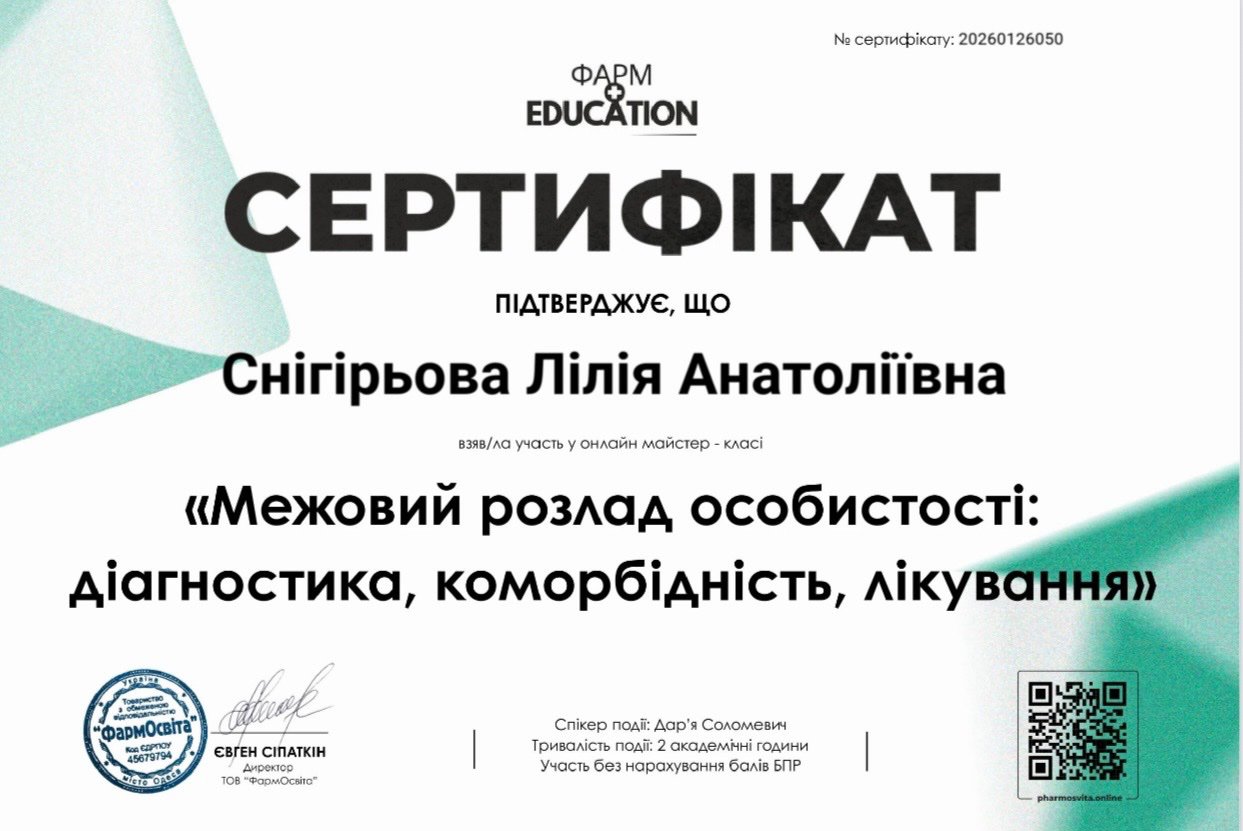 Я, Лілія Снігірьова, психолог, психотерапевт. Працюю у методі «Структурний аналіз». Окрім своєї психотерапевтичної спеціалізації, маю знання з інших напрямків психотерапії та вміло інтегрую їх у роботі. З повагою і зацікавленістю ставлюся до кожного запиту, уважна до деталей, ввічлива і відповідальна. Мене дуже надихає моя професія, я постійно знаходжуся у розвитку і вдосконаленні професійних навичок. Окрім роботи я захоплююся спортивною гімнастикою, бо вважаю, що в житті дуже важливий баланс, і що в здоровому тілі здоровий дух.