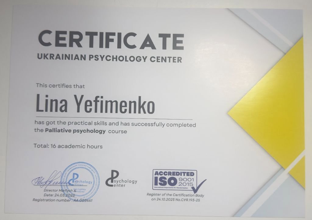 - Український Психологічний Центр- курс «Основи паліативної психології»